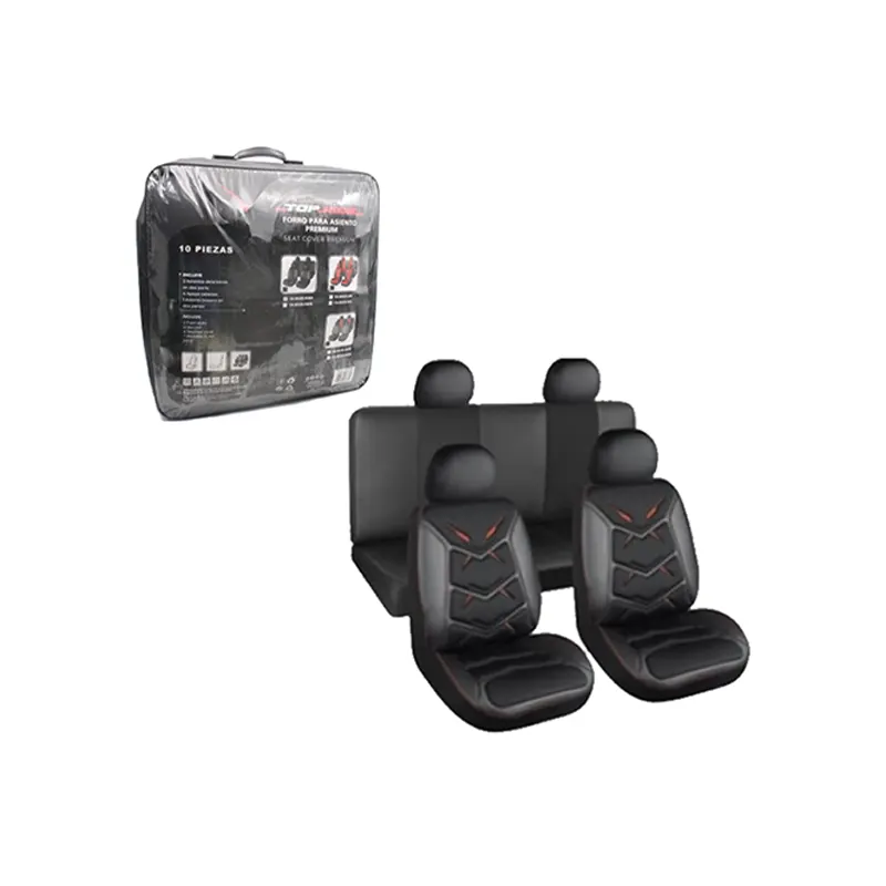 Lafa Racing Topride Leather Seat Cover Full Black/Black/Red 10Pcs